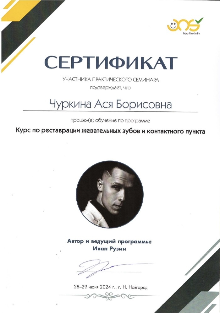 Курс по реставрации жевательных зубов и контактного пункта. Сертификат 17.10.2024 Лекционно-практический курс «Фронтальный интенсив»