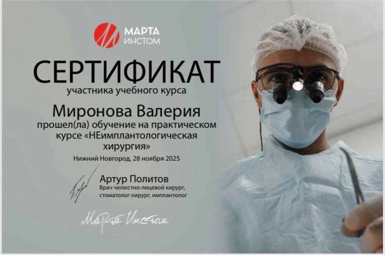 28.11.2025г «НЕимплантологическая хирургия». г. Нижний Новгород. Сертификат