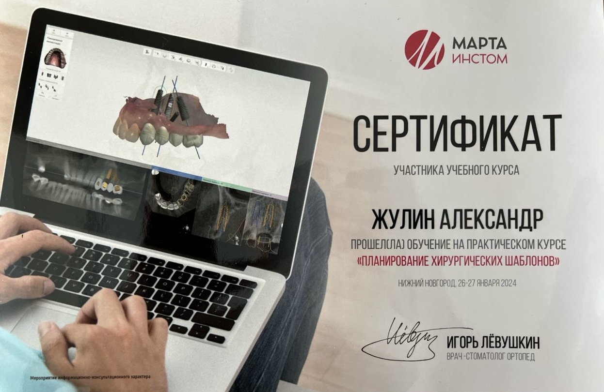 26-27 января 2024 г. «Планирование хирургических шаблонов». Сертификат